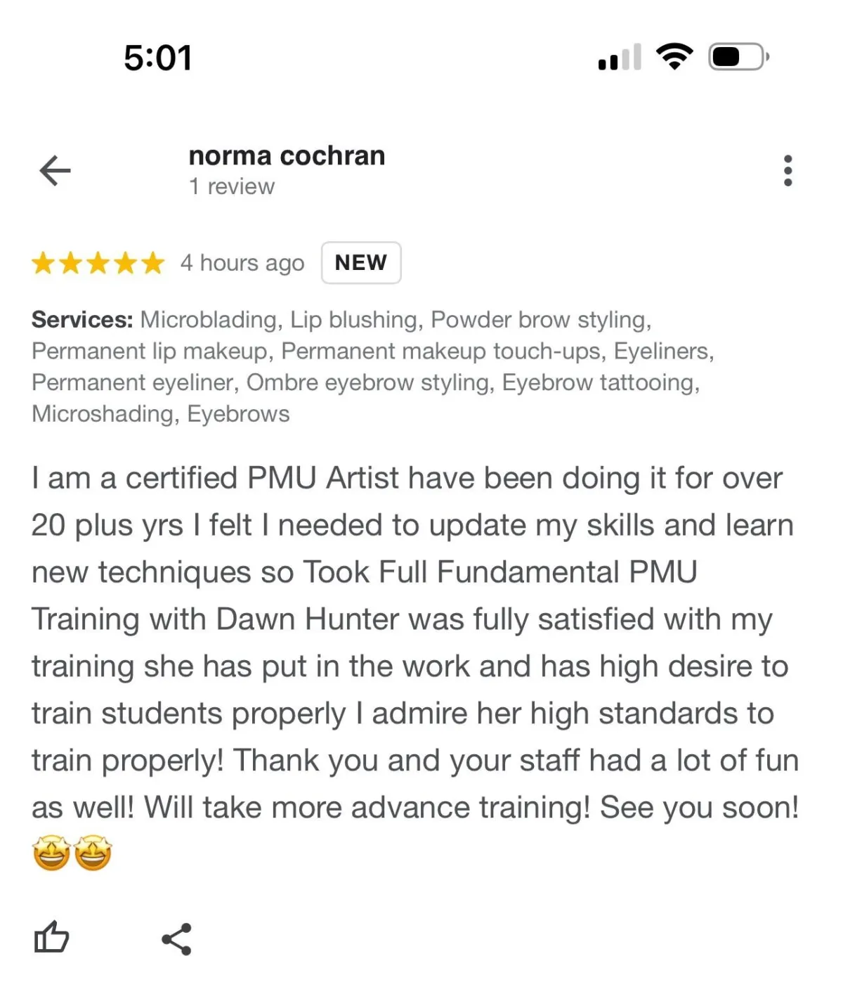 RAVE REVIEWS FROM OUR PMU TRAINING GRADUATES